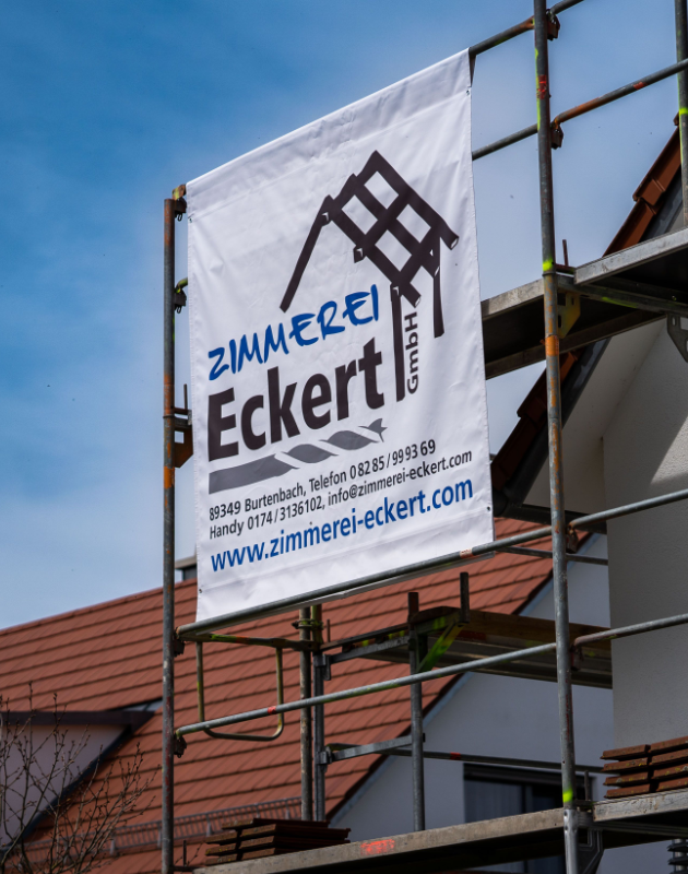 Großflächige Außenwerbung für maximale Sichtbarkeit – ideal für Firmenstandorte, Baustellen und Events.